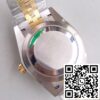 Dial: The watch features a unique champagne dial that is 18K yellow gold plated, exuding luxury and sophistication. The elegant gold time markers and hands are treated with fluorescent material, ensuring readability in low-light conditions, demonstrating EW Factory’s commitment to detail in their replica rendition. The dial’s rich appearance makes it a remarkable knockoff of the authentic Rolex glamour.
