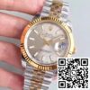 Dial: The standout Rhodium Dial encapsulates the EW Factory’s dedication to accurate craftsmanship. Layered with elegant stick markers and hands enhanced with luminescent material, it reflects a serene radiance. Each detail, from the laser-precision text and engravings to the date magnification provided by the small window convex lens, establishes the authenticity of this 1:1 replica, ensuring clarity akin to genuine Rolex dials.