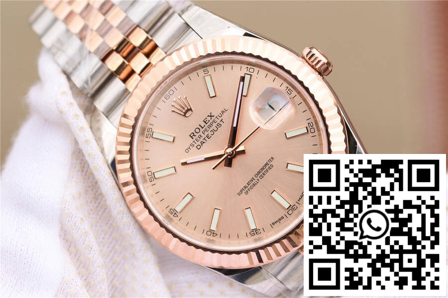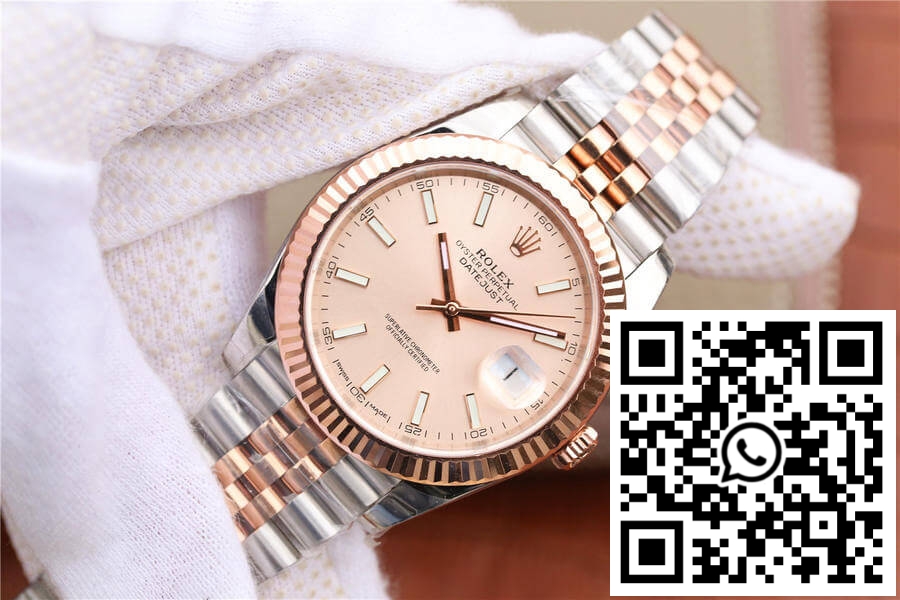 Dial: The Sundust dial is a focal point of this exceptional replica. Adorned with elegant stick hour markers, the dial emanates sophistication. It provides a faithful interpretation of the iconic Datejust aesthetics, ensuring the timepiece stands out in any crowd.