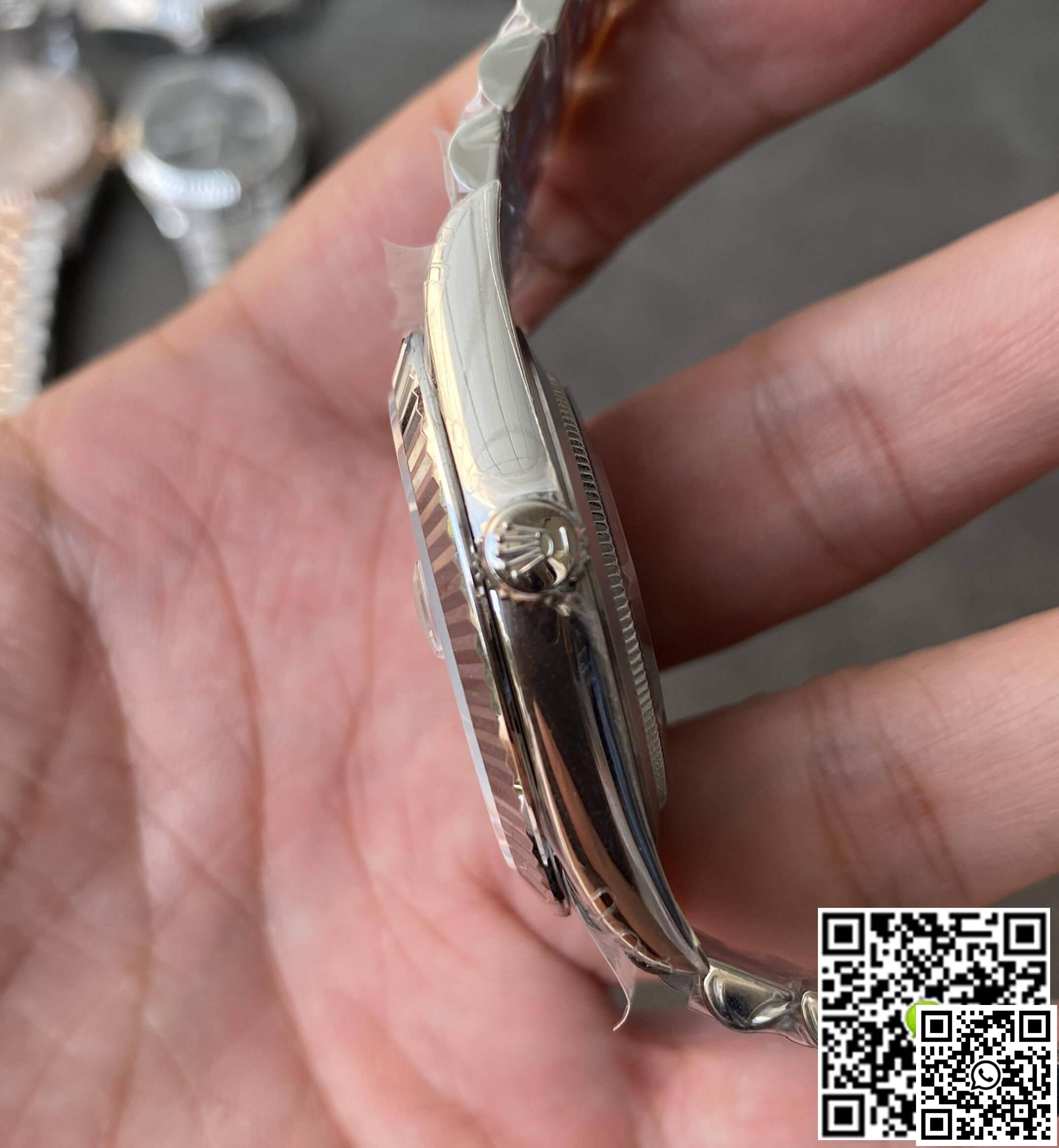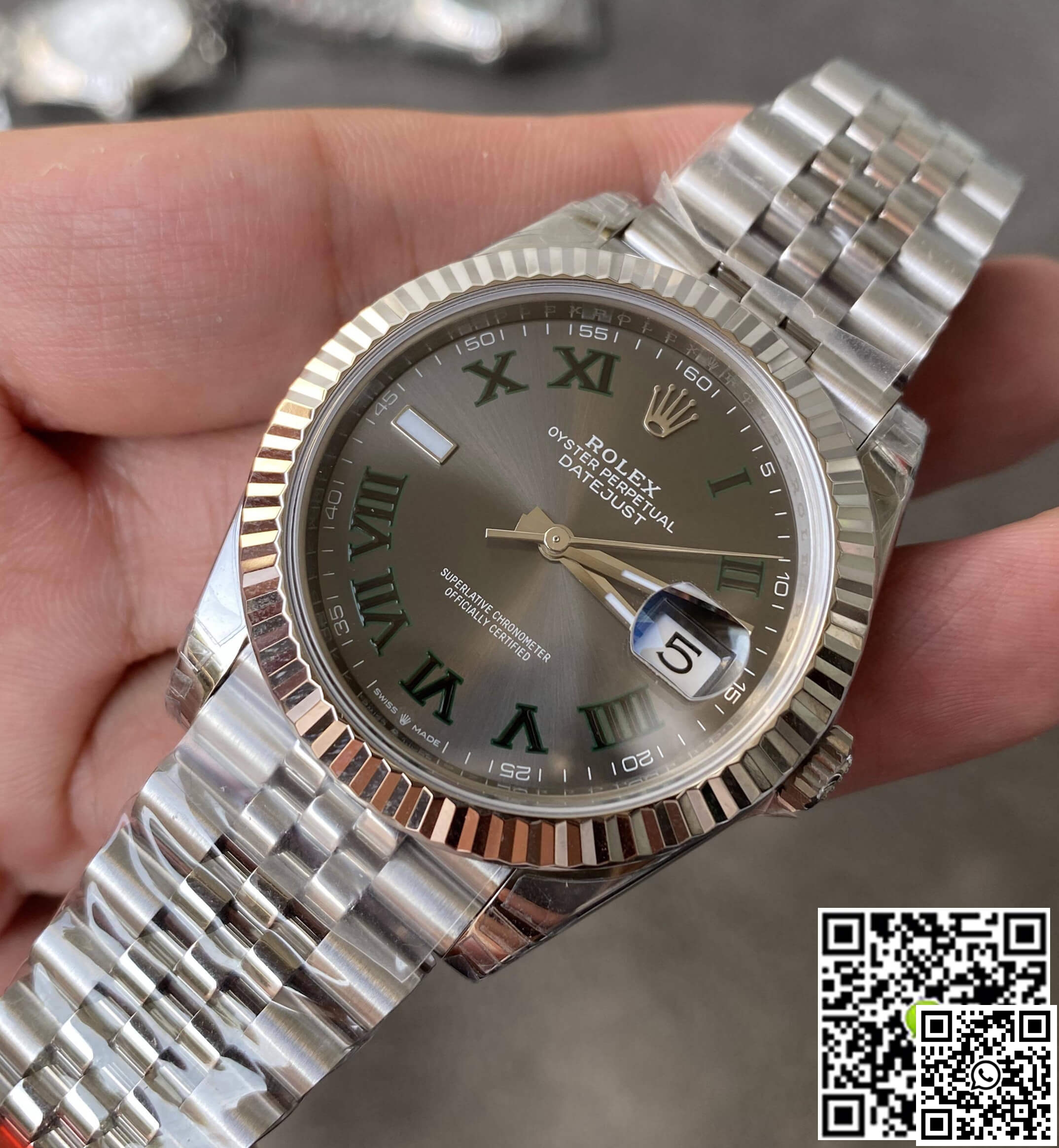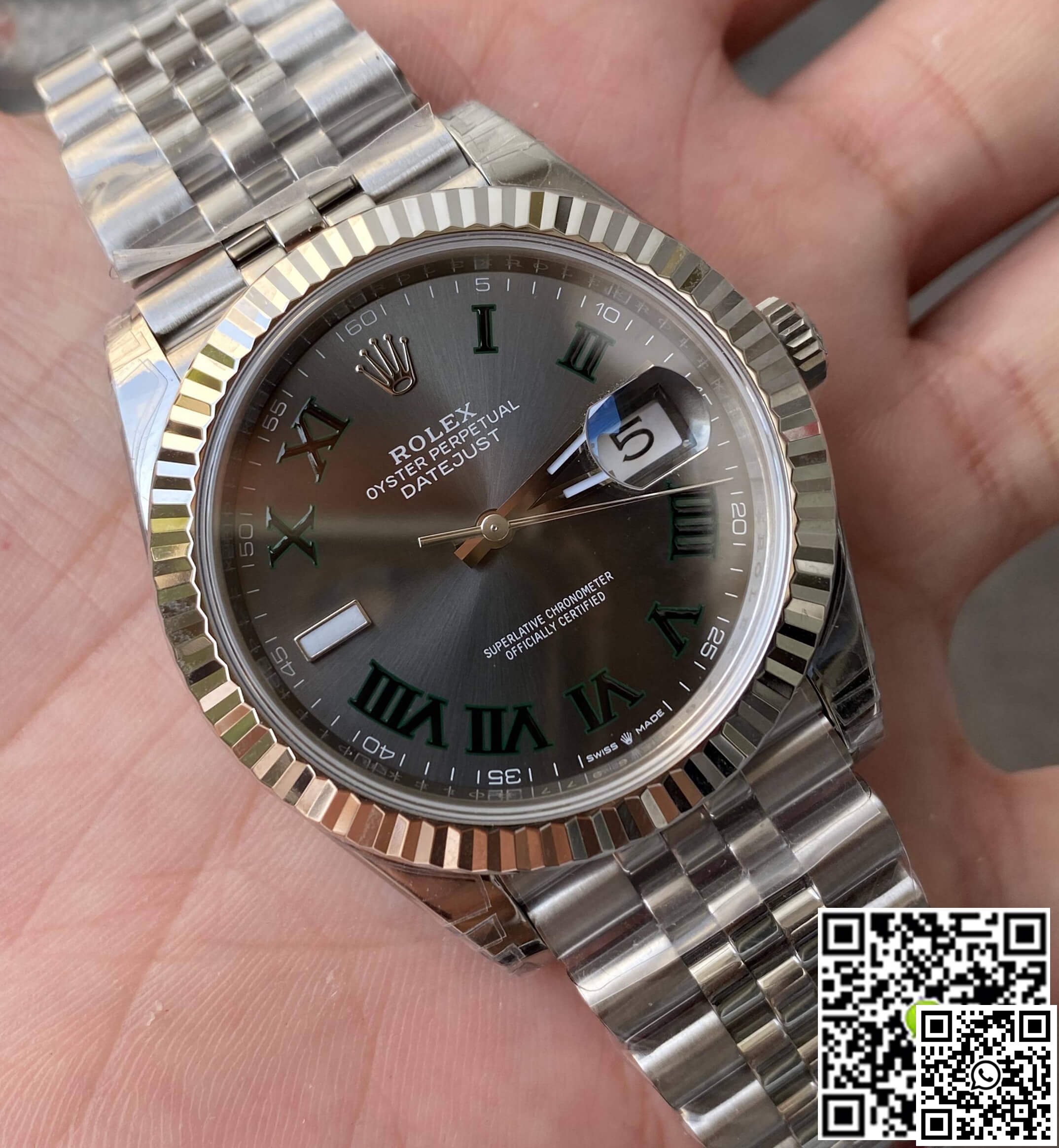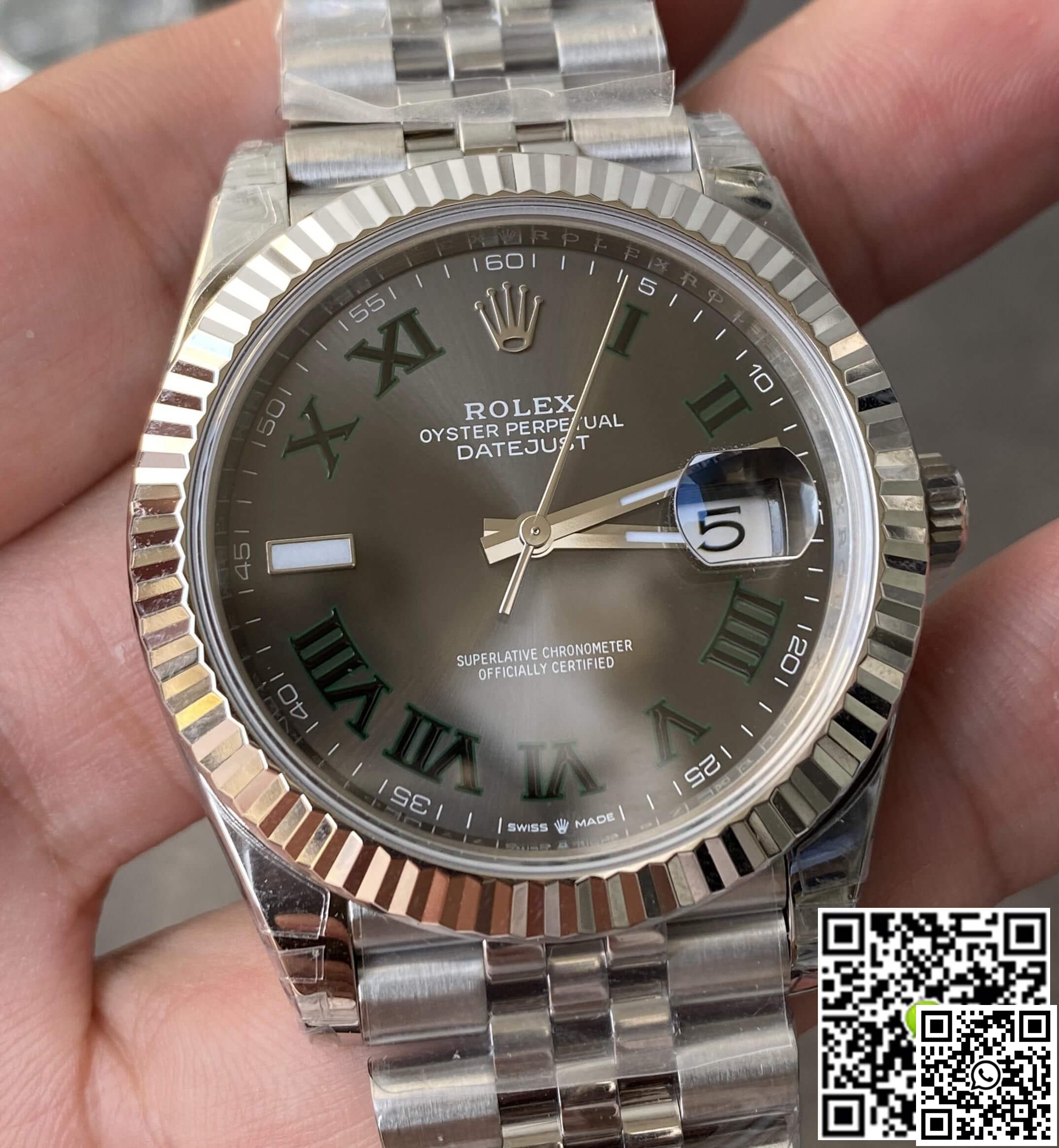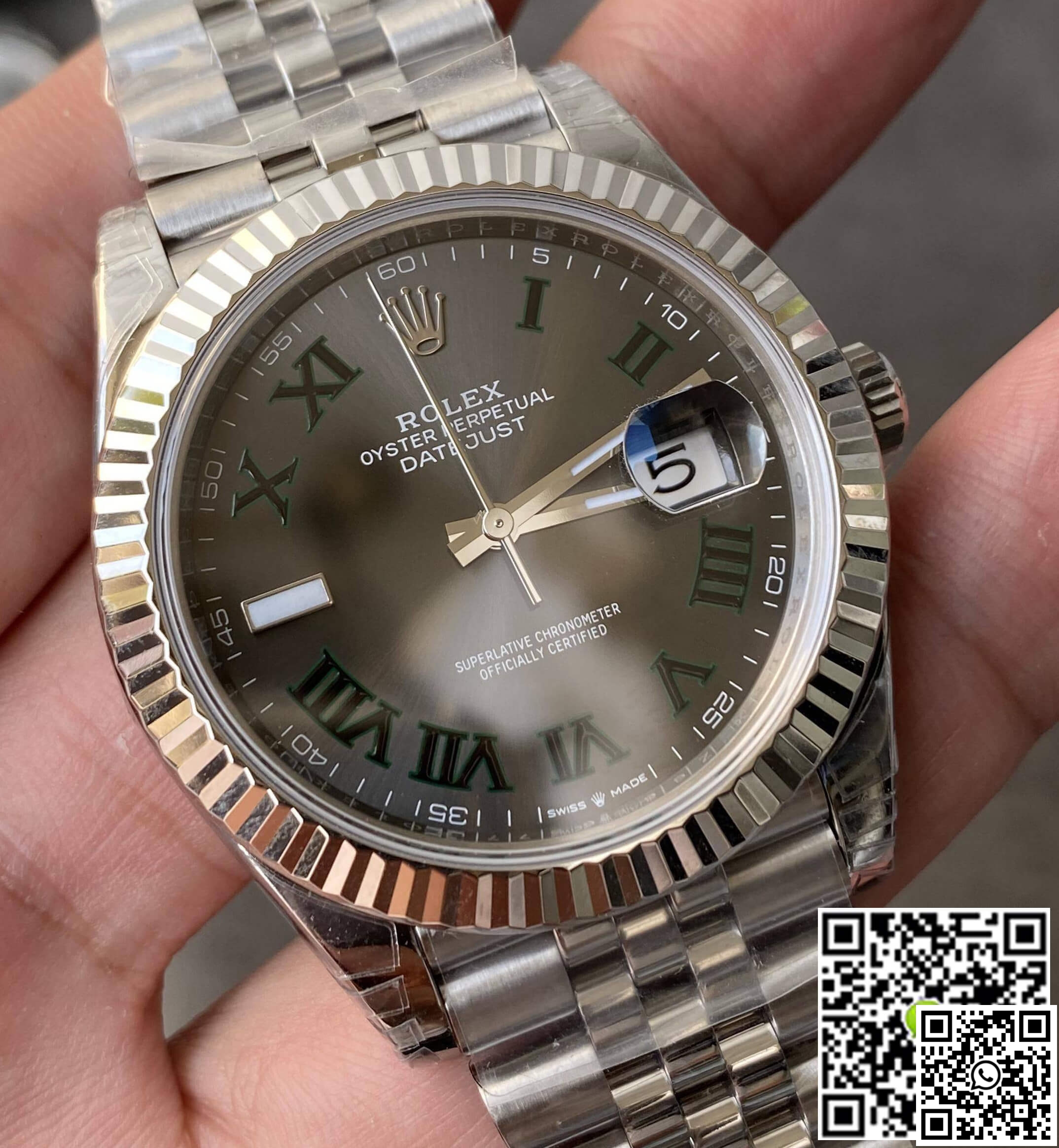 Crystal: A high-resilience sapphire crystal offers impeccable clarity and scratch resistance. This watch also features a 2.5x magnifying cyclops lens over the date, enhancing readability. The laser-etched Rolex Crown Logo at the 6 o’clock position speaks volumes of the watch’s authenticity.