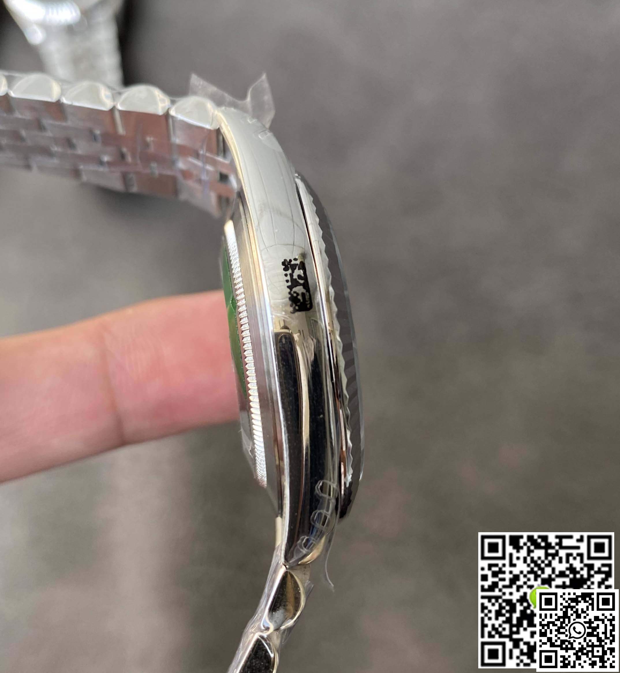Bezel: The highlight of the replica is its Fluted Bezel, constructed from solid 904L stainless steel. The bezel, designed to mimic the touch of luxury in genuine Rolex watches, embodies refinement and sophistication. It’s coated with a scratch-protection DLC layer to ensure enduring beauty.