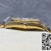 This model features a striking dark grey dial, which elegantly contrasts with the golden accents, capturing attention at first glance. The intricate detailing on the dial replicates the authenticity of the original Rolex design, featuring hour markers and hands that are optimized for both appearance and functionality. The precise printing and perfectly aligned time scales reflect the watchmaking prowess of the 8+ Factory.