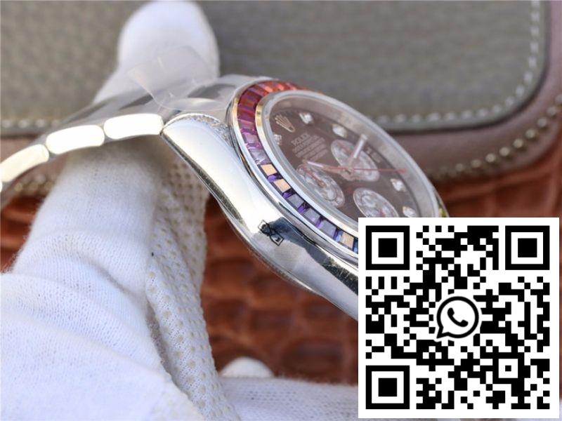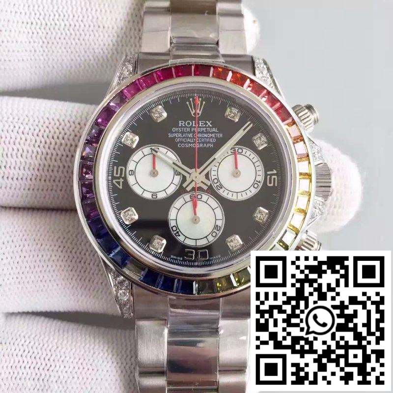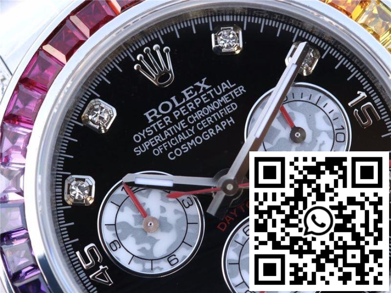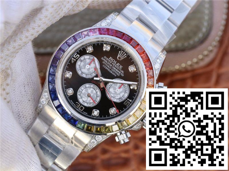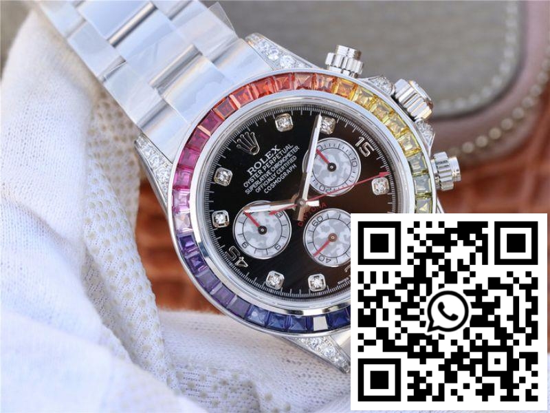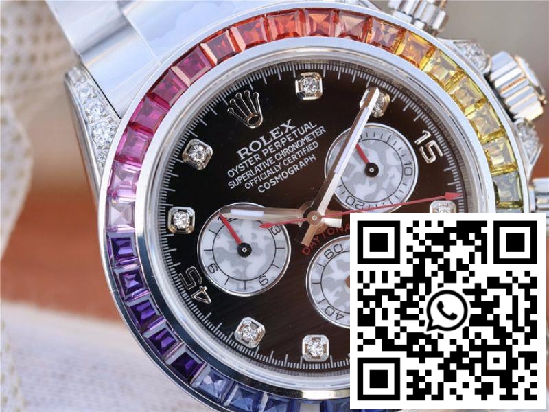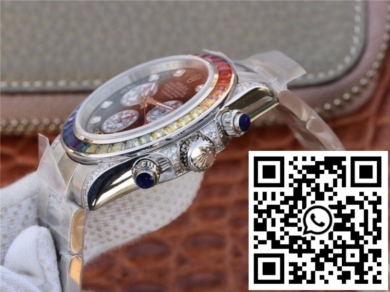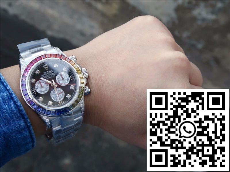 The BL Factory Rolex Daytona Cosmograph Rainbow 116595RBOW is a perfect marriage of vibrant aesthetics and excellent craftsmanship. From its dazzling gem-set bezel to the precision of its Swiss ETA movement, every component of this knockoff is carefully crafted to provide an authentic experience. Whether as a statement piece for special occasions or an everyday accessory that stands out, this replica embodies a commitment to excellence. Experience the unparalleled artistry of BL Factory with this luxurious Daytona clone—a true celebration of impeccable design.