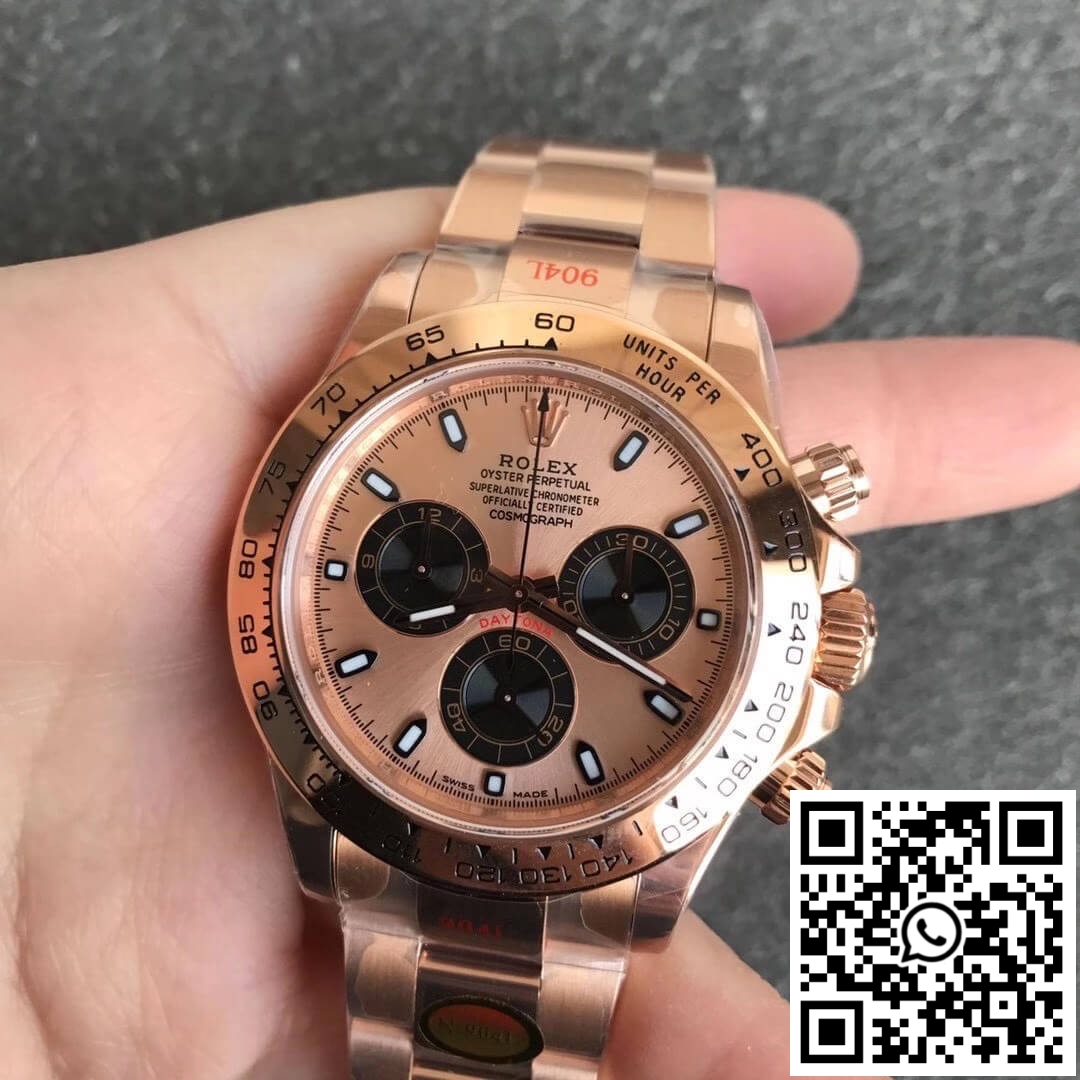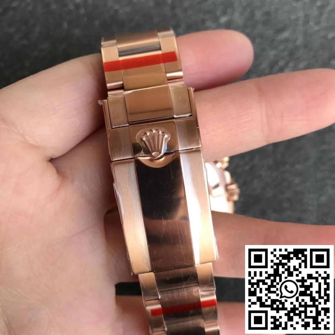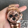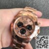 CASE: The Noob Factory’s super clone Rolex Daytona m116505-0009 features a meticulously crafted 40mm case in full rose gold, reflecting the timeless elegance associated with genuine Rolex pieces. The screw-down case-back and crown ensure robust water resistance, while the case dimensions preserve the graceful lines and superior wearability identical to the original model, allowing for seamless interchangeability of parts.