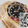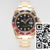 CASE: The case of the ROF Factory’s luxury replica GMT Master II is engineered with precision, featuring a 40mm diameter that is faithful to the genuine Rolex specification. It is adorned with exquisite diamonds and colorful Austrian gems, renowned for their uniform color, size, and brilliance. These gems are meticulously set by skilled ROF jewelry setters, ensuring an elegant and luxurious appearance that makes this watch a compelling choice for those seeking a classic trend with a touch of sparkle.