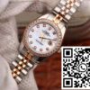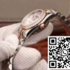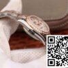 Dial: The white enamel dial is the centerpiece, radiating with pastel elegance and featuring rose gold-rimmed diamond hour markers. It offers clarity and refinement, ensuring a radiant yet practical interface. Emphasizing functionality, the watch features gold-plated hour, minute, and second hands which glide serenely across the dial. A 2.5 times convex calendar window situated at the 3 o’clock position enhances the legibility of the date, making this replica an ideal everyday accessory.