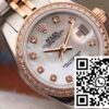 CASE: This exquisite replica watch is crafted with a sophisticated brushed polished case measuring at an elegant 28mm, perfectly resonating with the ethos of compact luxury. The sleek silhouette is complemented by the lustrous 18K rose gold diamond bezel, embodying grace and opulence that are quintessential to the revered Datejust line.