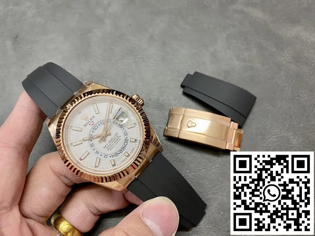 Introducing the exquisite Replica Rolex Sky Dweller M326235-0004 from Noob Factory, a masterpiece that combines sophistication and intricate craftsmanship. This high-quality replica watch is a perfect blend of elegance and functionality, catering to those who seek the prestige of owning a Rolex without the hefty price tag. Tailored for the discerning gentleman, this watch is a testament to timeless design and superior performance.