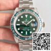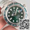 Bezel: The stainless steel coin-edge bezel is a standout feature, gracefully set with luxurious green diamonds. This bezel adds a hint of opulence while maintaining the classic Submariner design, ensuring that the watch catches the eye.