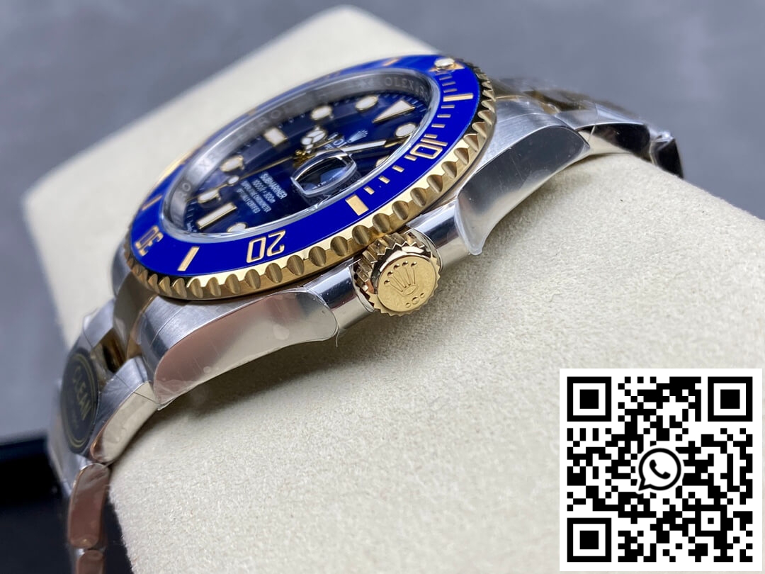 CASE: The Clean Factory’s exceptional craftsmanship shines in this 41mm solid Yellow Gold case, offering a perfect match to genuine Rolex aesthetics. The screw-down case-back and Triplock triple waterproofness system winding crown ensure unparalleled water protection. This Rolex Submariner clone provides a seamless interchangeability with genuine parts, showcasing remarkable attention to detail with accurate dimensions and weight. The integrated ROLEX engraving on the Rehaut adds a touch of authenticity and refinement.