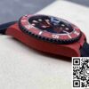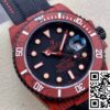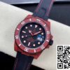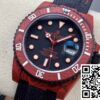 **CASE**: The standout feature of this replica is its red carbon fiber case, measuring a classic 40 mm. Known for its lightweight and durable properties, carbon fiber adds a modern twist to the traditional Submariner aesthetic. The case retains the unmistakable profile of Rolex design, enhanced by the bold color choice, appealing to those who favor a combination of elegance and contemporary style.